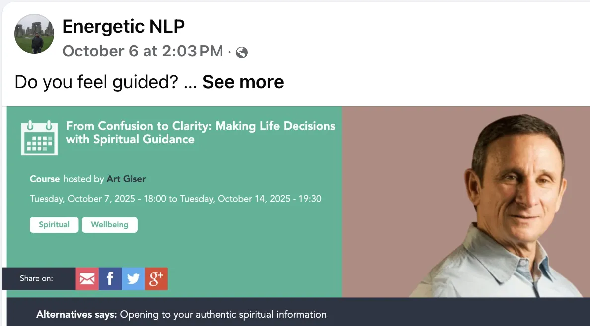 Art has been an NLP trainer and taught energetic transformative work & intuition development for over 37 years.